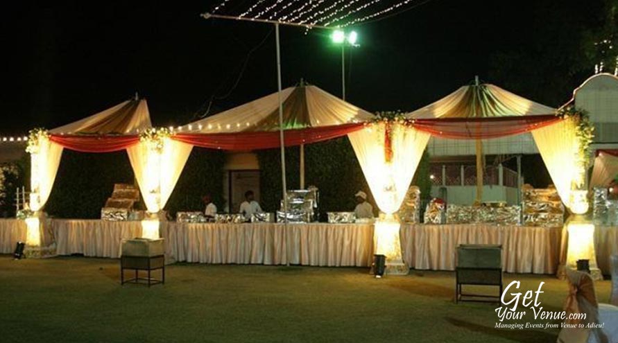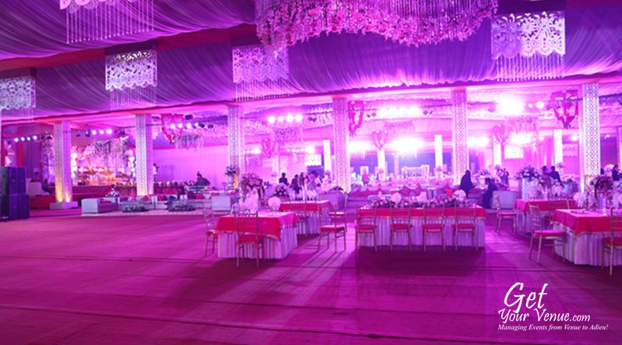 The vast expanse of verdant lawns adds subtle charm to your wedding venue. It ensures your esteemed guests having enough room to meet and greet without bumping into each other. Lovely lighting effect and floral décor make the space more elegant.