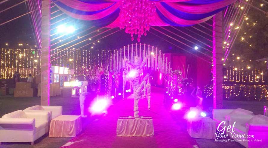 Lawn – A beautiful, spacious and elegant full-service event facility that is appropriate for any wedding-related event. Offering the best 360-degree views of any banquet facility anywhere, this wedding lawn in North Delhi is 60,000 sq ft large and can accommodate 1,000 to 2,000 guests.
