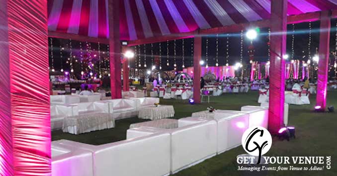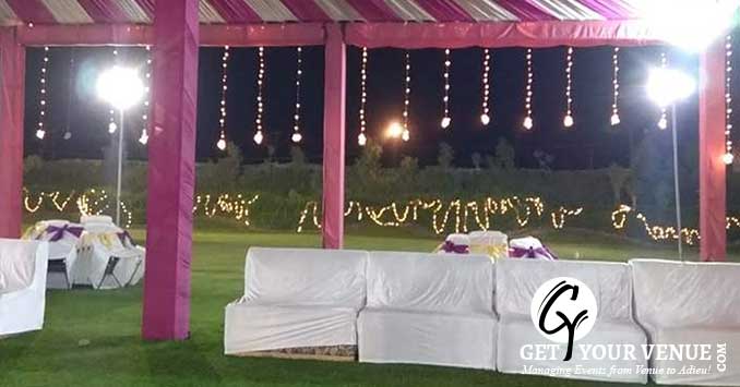 The vast expanse of verdant lawns adds subtle charm to your wedding venue. It ensures your esteemed guests having enough room to meet and greet without bumping into each other. Lovely lighting effect and floral décor make the space more elegant.