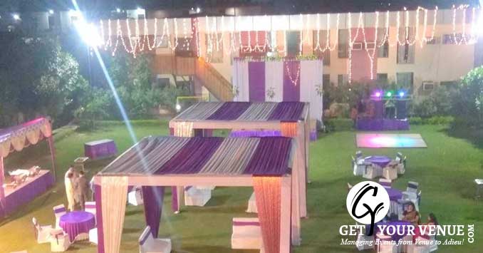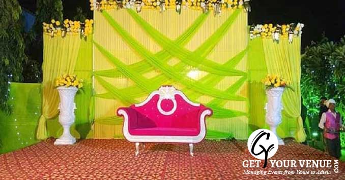 The vast expanse of verdant lawns adds subtle charm to your wedding venue. It ensures your esteemed guests having enough room to meet and greet without bumping into each other. Lovely lighting effect and floral décor make the space more elegant.