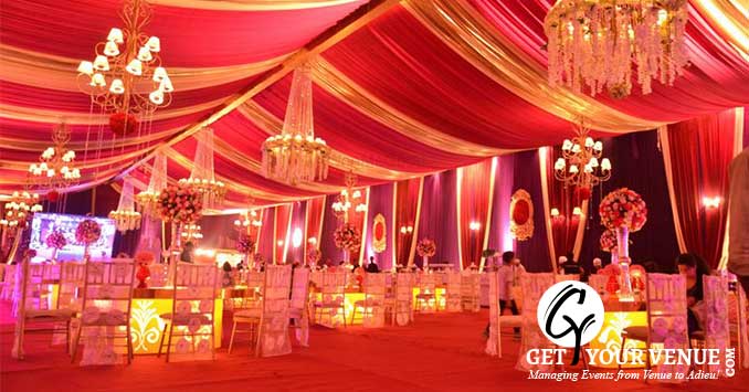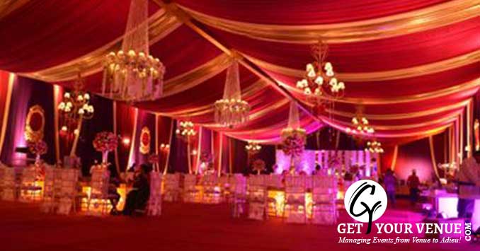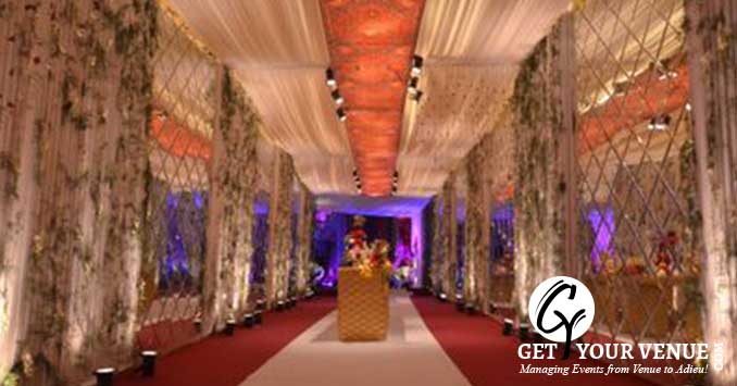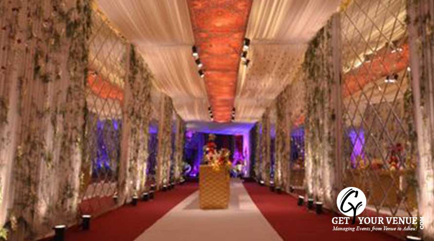 The vast expanse of verdant lawns adds subtle charm to your wedding venue. It ensures your esteemed guests having enough room to meet and greet without bumping into each other. Lovely lighting effect and floral décor make the space more elegant.