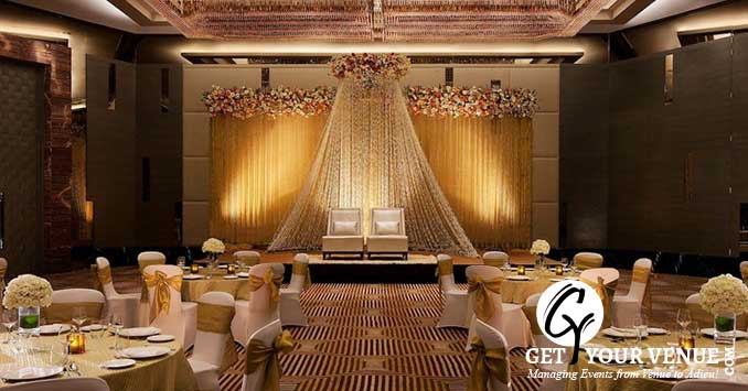Stylish interiors, stunningly beautiful lighting effects and comfortable seating arrangements make this banquet hall perfect for a glittery wedding affair.
