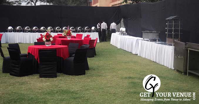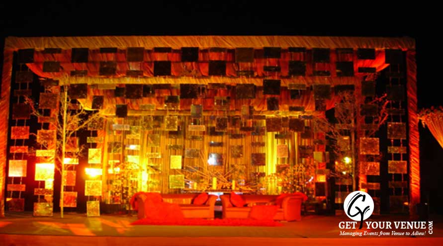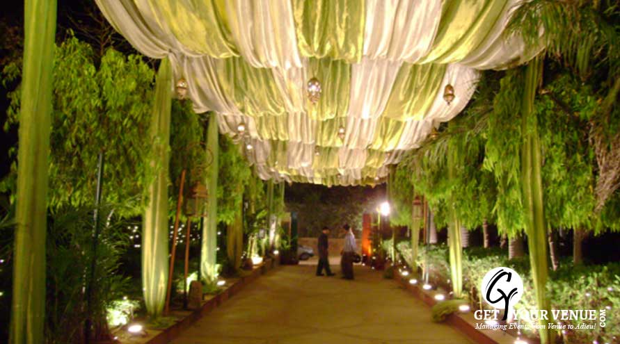 The vast expanse of verdant lawns adds subtle charm to your wedding venue. It ensures your esteemed guests having enough room to meet and greet without bumping into each other. Lovely lighting effect and floral décor make the space more elegant.
