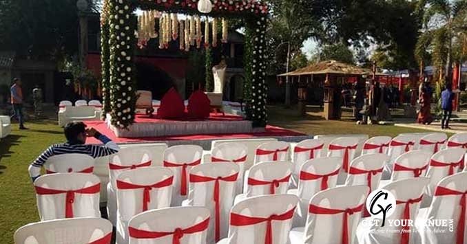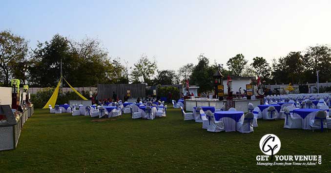Lush green lawn - with a delighting ambiance that place has a capacity of up to 500 people that makes it perfect for weddings, parties, events and pre or post-wedding ceremonies.