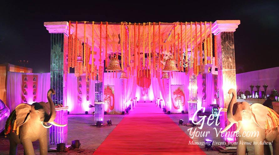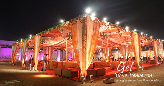 Lawn & Banquet - Whether intimate ceremonies or grand affairs, this garden provides a warm, romantic setting for all kinds of wedding celebrations. It offers 40,000 sq ft sized lush, green area where you can invite 400-1000 guests. It also includes a spacious wedding hall in South Delhi.