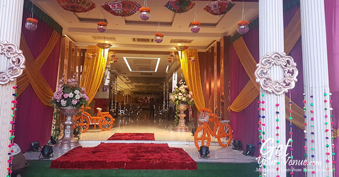 Set outside the bustling city, on the wedding hub of GT Karnal Road, Myra by Kawatra Lavanya is a lavish wedding venue in North Delhi. It promises to capture the attention of your guests and charm them with its exquisite and elegant structure. A place where your dreams transcend into realities, this upscale property is where services are rendered with utmost commitment. Having a modest accommodation of more than 500, it offers a vast variety of facilities. These include excellent decoration, elegant lighting, exquisite catering, and a romantic ambiance, tight security, ample parking with valet service as well as an air-conditioned Pandal and a magnificent banquet hall in North Delhi. What’s more, the venue also provides bridal rooms which can double up as guest rooms. In the end, Myra by Kawatra Lavanya offers a one-of-a-kind banqueting experience via impeccable service and excellent guest hospitality. No wonder, it’s one of the most desired and respectable venues in the region.