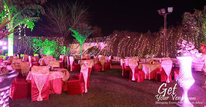 Lavish - The Party Lawn is located on the Palla Bakhtawar Road. A beautiful wedding farmhouse in Delhi, it has a huge stretch of green lawn where you can host a variety of wedding-related events. Nothing better describes this venue than its own name. Strategically located on the prime GT Karnal Road, it has a variety of facilities which make it a cut above the rest. The venue is equipped to support all your banqueting needs and provides you with excellent services that enable you to enjoy your event to the fullest and in a maximum satisfactory manner. Trying out their well-known catering services is what we absolutely recommend! The farmhouse’s experienced and award-winning staff ensures all the details are accomplished as you and your guests celebrate your day. Cross Trust DJ services are also available at this wedding venue in North Delhi. All in all, Lavish the Party Lawn is the ideal banqueting space place that turns your vision of your dream day into a reality!