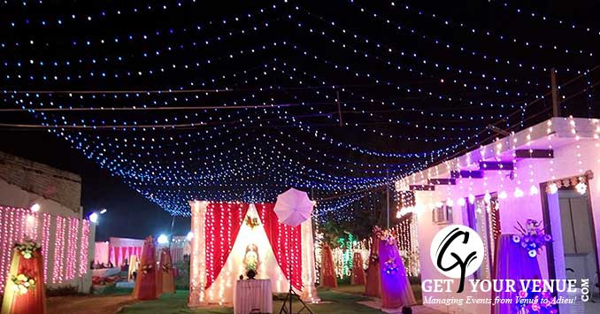 The vast expanse of verdant lawns adds subtle charm to your wedding venue. It ensures your esteemed guests having enough room to meet and greet without bumping into each other. Lovely lighting effect and floral décor make the space more elegant.