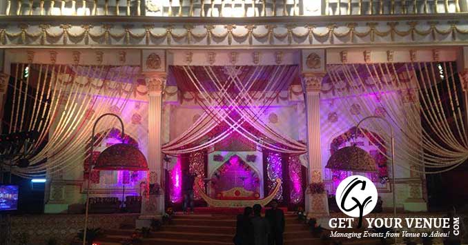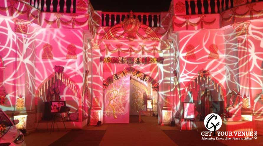 The vast expanse of verdant lawns adds subtle charm to your wedding venue. It ensures your esteemed guests having enough room to meet and greet without bumping into each other. Lovely lighting effect and floral décor make the space more elegant.
