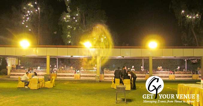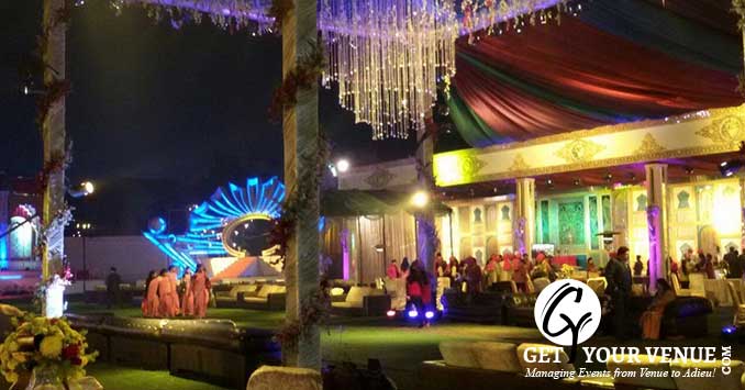 The vast expanse of verdant lawns adds subtle charm to your wedding venue. It ensures your esteemed guests having enough room to meet and greet without bumping into each other. Lovely lighting effect and floral décor make the space more elegant.