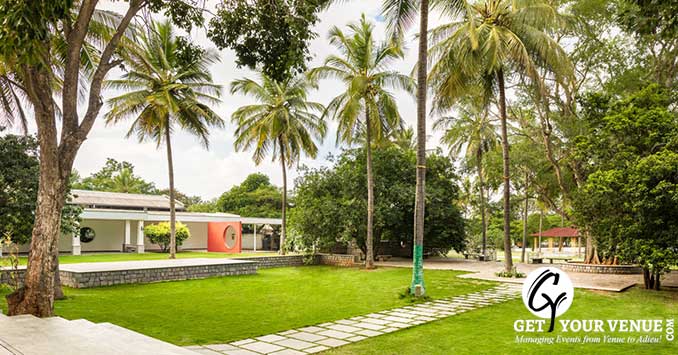 Whether it's a grand themed wedding or an intimate gathering, an evening under the stars, or a day-time event, Moongate ensures every wedding celebration leaves a lasting impression. Named after the traditional circular entrance that blesses a gathering and brings people closer, Moongate is a ten-acre property located ahead of Hebbal, at the international airport road. It is flanked on either side by a lake and hill. Steeped in natural beauty, Moongate both soothes the senses and sets the mood for joyous celebration. It has the space, amenities, professional team of staff, and a comfortable ambience which makes it a perfect wedding destination in Bangalore. They are well-reputed and cater to the needs of their guests making every event a grand success.