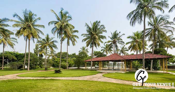 Open Lawn- Moon Gate is a enormous ten-acre property. They offer an outdoor wedding venue option to celebrate your occasion amidst natural beauty that is the beautiful open lawn of 40,000sqft to accommodate 2000 guests at a time with the serene lake as the backdrop.