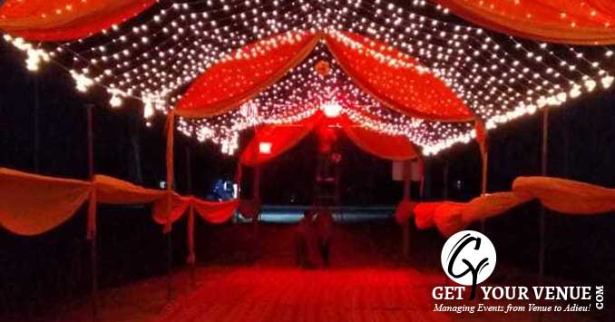 The vast expanse of verdant lawns adds subtle charm to your wedding venue. It ensures your esteemed guests having enough room to meet and greet without bumping into each other. Lovely lighting effect and floral décor make the space more elegant.
