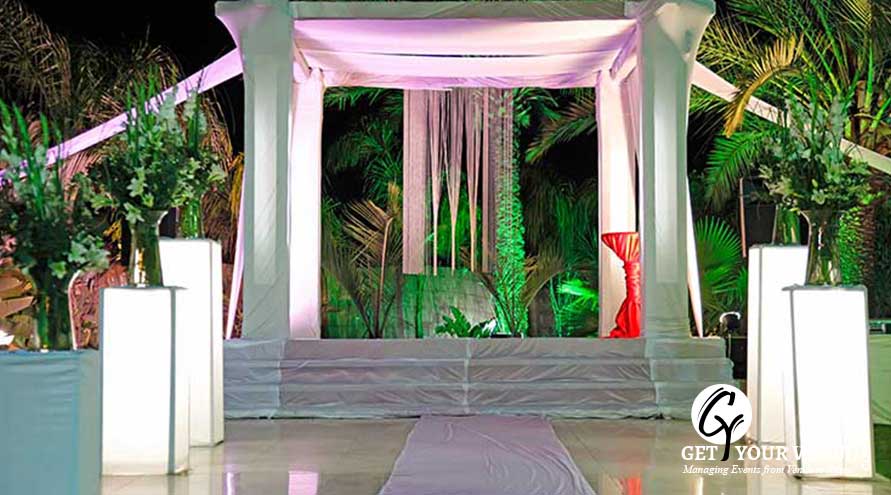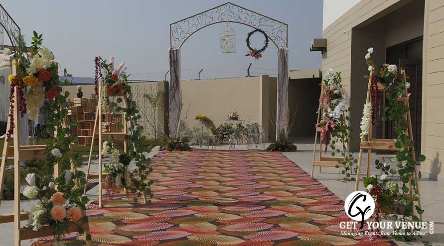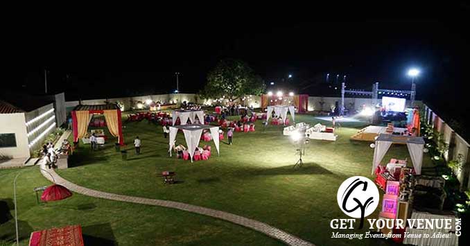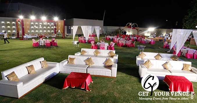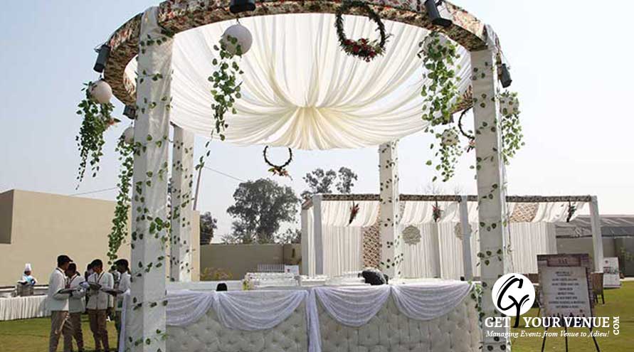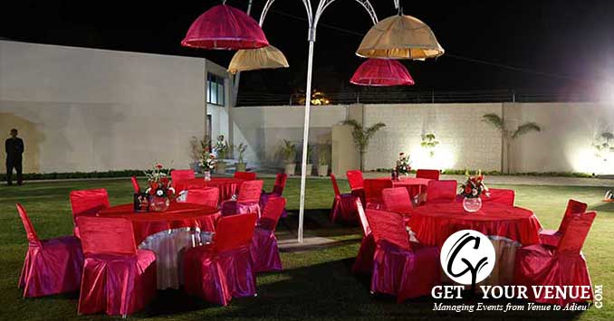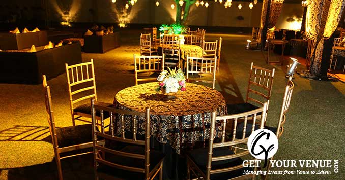 The vast expanse of verdant lawns adds subtle charm to your wedding venue. It ensures your esteemed guests having enough room to meet and greet without bumping into each other. Lovely lighting effect and floral décor make the space more elegant.