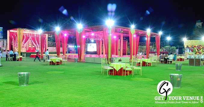 Lawn: Widespread in the space of 11,403 sq. ft, the lawn area can accommodate up to 900 guests at once. There is also a parking space to park up to 150 cars.