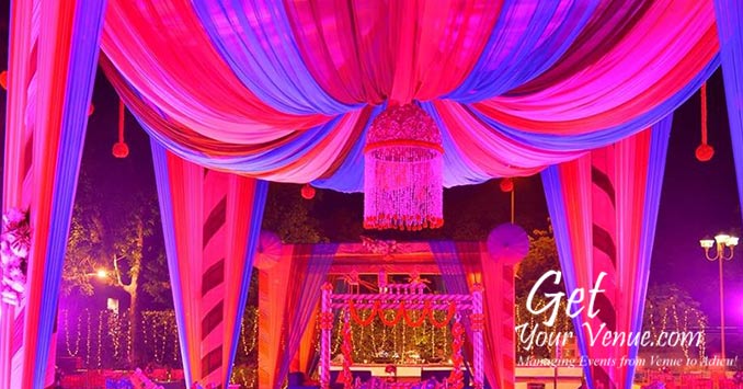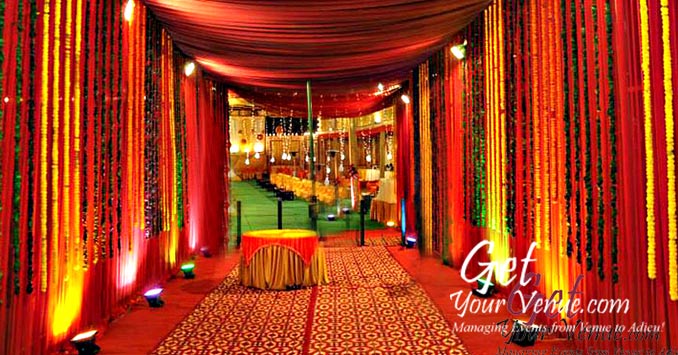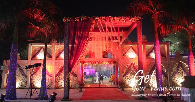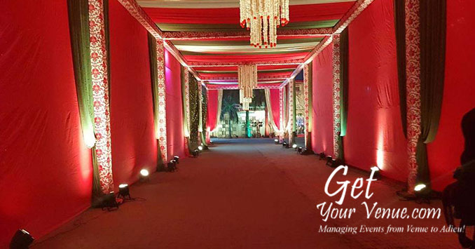 Party lawn – If splendid extravaganzas in fresh, open settings are your cup of tea then choose this 35,000 sq ft sized lawn. This aesthetically landscaped area at the New Vasu Garden can entertain 800 to 1000 guests.