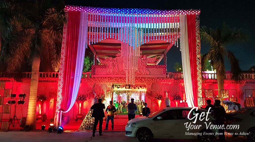 Spread across acres of lush green land, offering a fabulous and bespoke wedding experience is the New Vasu Garden Chattarpur. An upscale property that is fast becoming reaching the list of top wedding venues in South Delhi, there is no other place better than this farm. A perfect blend of upscale charm and contemporary facilities, it provides its customers with an incredible range of facilities under one roof – state-of-the-art facilities, modern facilities, and a dedicated staff that leaves to stone unturned to make your big day memorable. Surrounded by verdant vegetation, it's the ideal place to relax, unwind and rejuvenate. In case it rains, it has a decently sized waterproof pandal that serves uninterrupted celebrations. What’s more, the farm is in proximity to many monuments, historical landmarks, tourist attractions, and shopping centers, thus offering you the option to go sight-seeing or shopping. If you’re looking for a splendid banquet hall in South Delhi to host a variety of wedding-related functions rest assured, you need not look further than the New Vasu Garden Chattarpur. Here you can also celebrate non-wedding occasions like birthdays, anniversaries, family get-togethers, corporate events, and community functions.