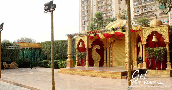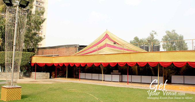 The vast expanse of verdant lawns adds subtle charm to your wedding venue. It ensures your esteemed guests having enough room to meet and greet without bumping into each other. Lovely lighting effect and floral décor make the space more elegant.