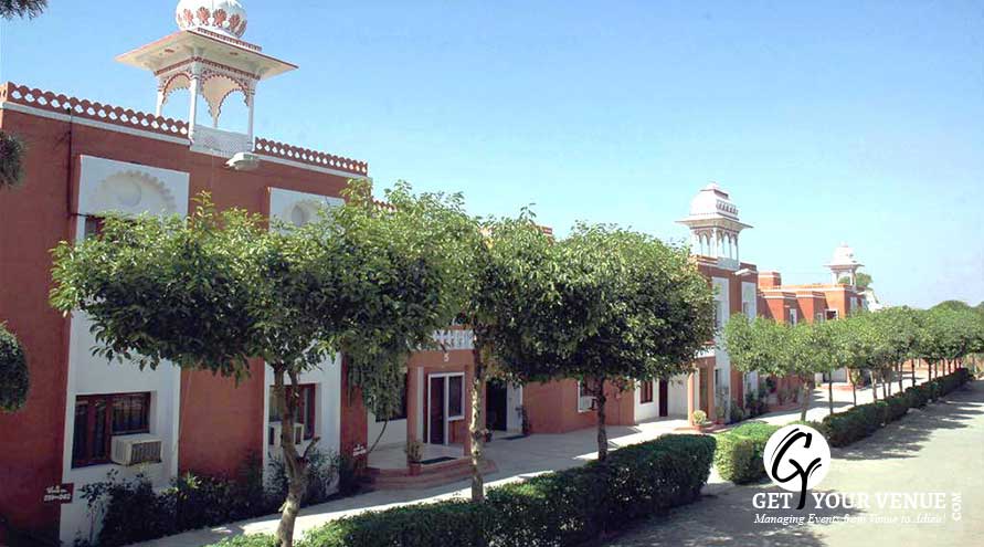 An expansive area on which the resort has been constructed, one of the biggest advantages of this property is 64,000 sq feet of open green lawns. Located in Subhash Nagar, its prime location makes it one of the best wedding venues in Udaipur. All tourists’ spots of attraction are within 3 to 5 km of the property.