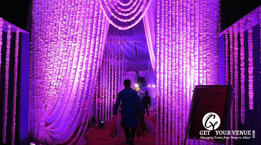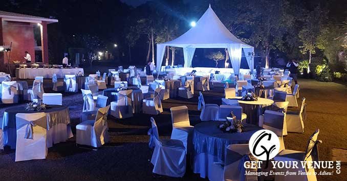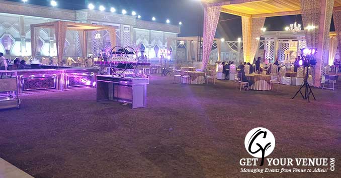 The vast expanse of verdant lawns adds subtle charm to your wedding venue. It ensures your esteemed guests having enough room to meet and greet without bumping into each other. Lovely lighting effect and floral décor make the space more elegant.