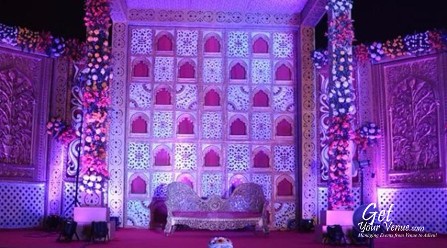 The vast expanse of verdant lawns adds subtle charm to your wedding venue. It ensures your esteemed guests having enough room to meet and greet without bumping into each other. Lovely lighting effect and floral décor make the space more elegant.