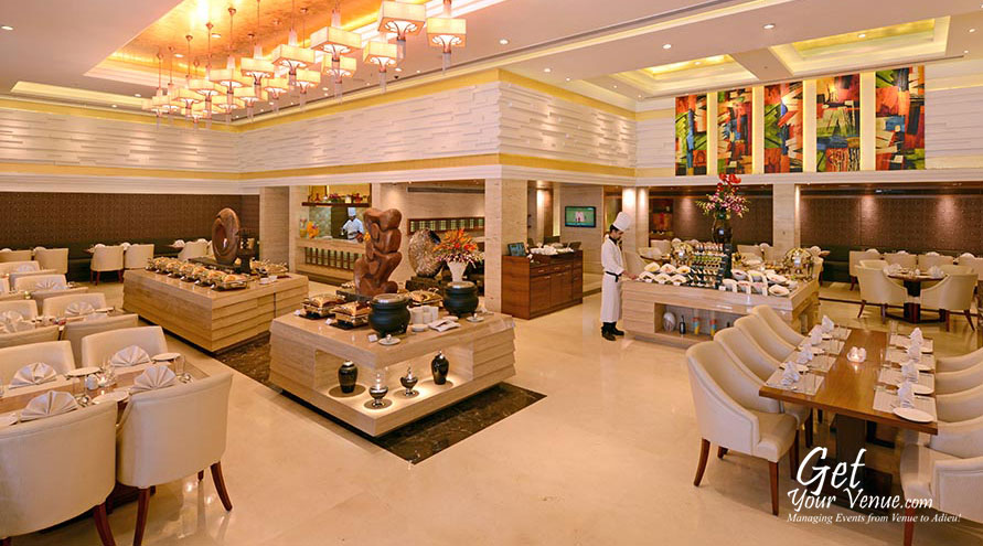 Axis Hall – The second smallest hall at the hotel, the Axis is a 3,300 sq ft that can seat 100 to 150 guests. Similar to the Orbit, this 5-star banquet hall in Noida is also designed for small, intimate affairs with near and dear ones.