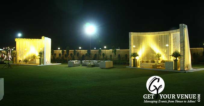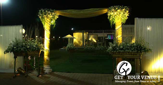 The vast expanse of verdant lawns adds subtle charm to your wedding venue. It ensures your esteemed guests having enough room to the meet and greet without bumping into each other. Lovely lighting effect and floral décor make the space more elegant.