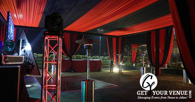 The vast expanse of verdant lawns adds subtle charm to your wedding venue. It ensures your esteemed guests having enough room to meet and greet without bumping into each other. Lovely lighting effect and floral décor make the space more elegant.