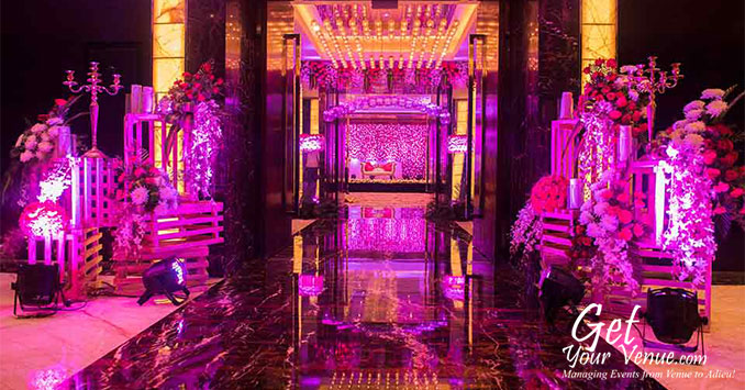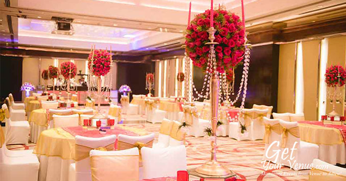 Crystal – A 15,000 sq ft sized, air-conditioned hall, the Crystal is the ideal place to host extravagant parties with large gatherings. This marvelously designed 5-star wedding hall in South Delhi has a seating capacity of 400 to 800 guests.