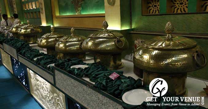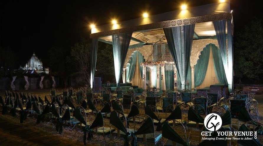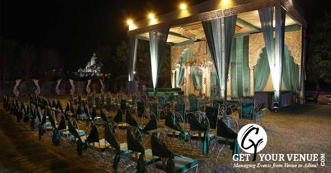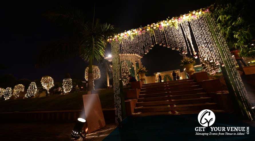 The vast expanse of verdant lawns adds subtle charm to your wedding venue. It ensures your esteemed guests having enough room to meet and greet without bumping into each other. Lovely lighting effect and floral décor make the space more elegant.