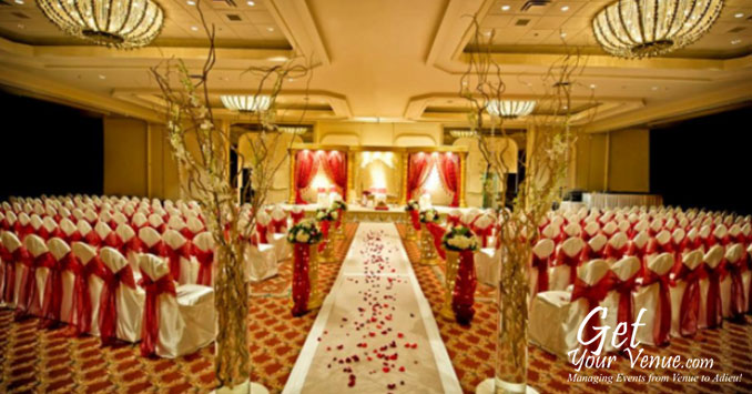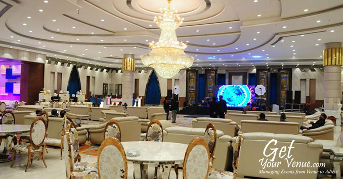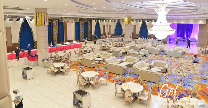 Stylish interiors, stunningly beautiful lighting effects and comfortable seating arrangements make this banquet hall perfect for a glittery wedding affair.