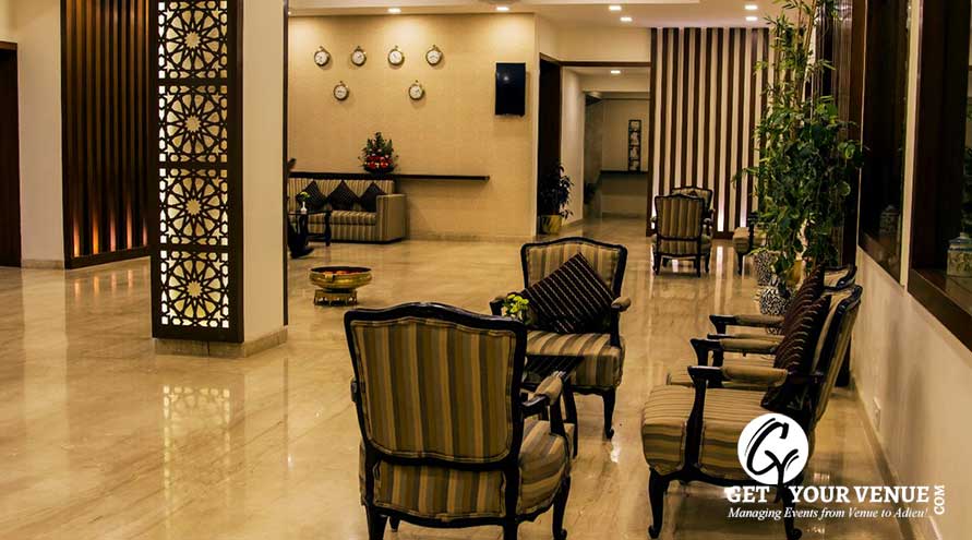 The Central Hall: It can accommodate a maximum of up to 60 guests and it is perfect for small wedding events, cocktail parties and social events, it offers great vegetarian cuisines with independently organized environment and audiovisual equipment are included.