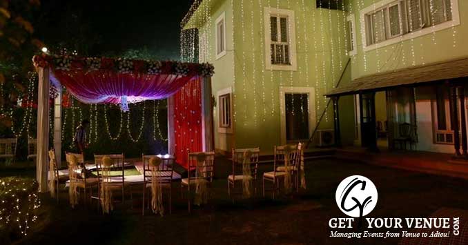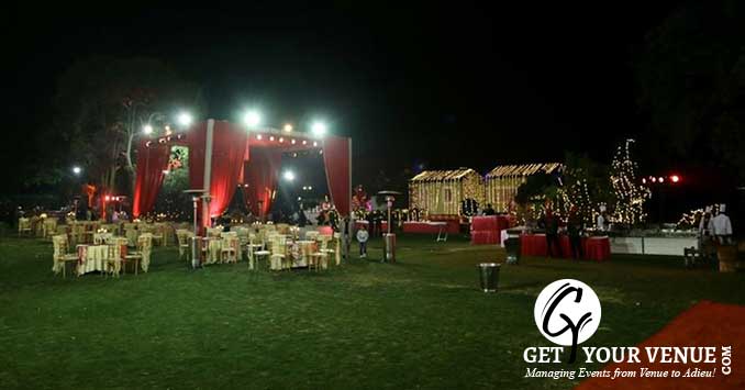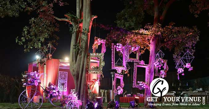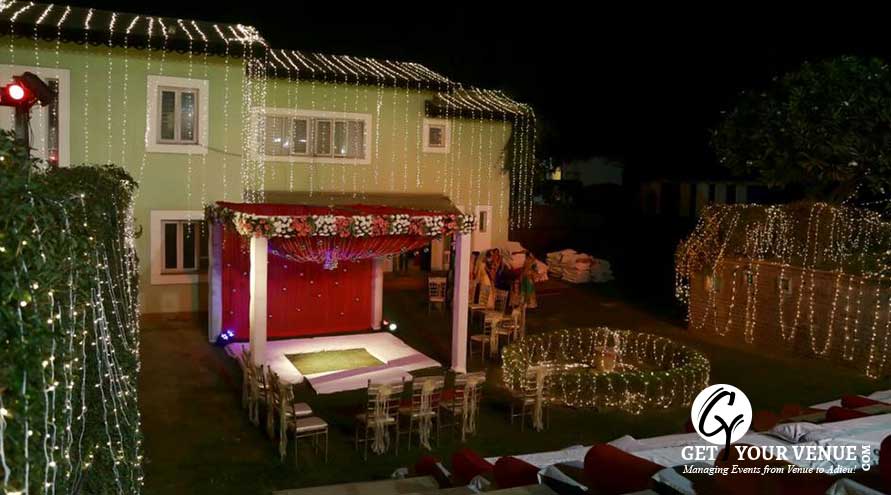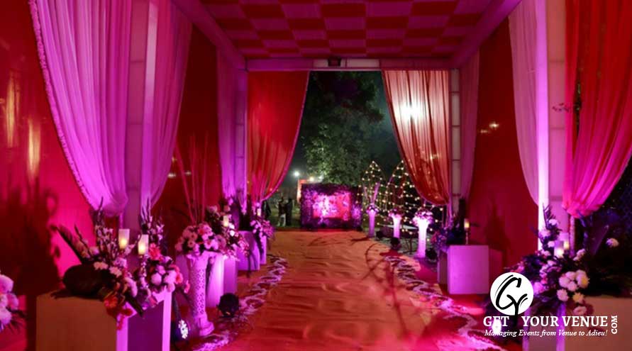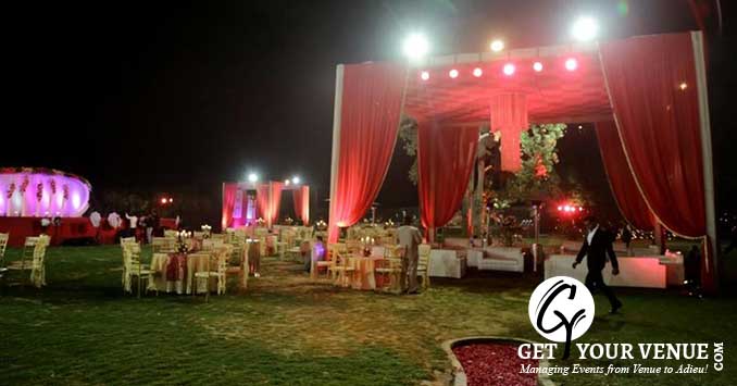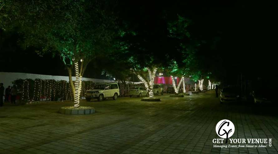 The vast expanse of verdant lawns adds subtle charm to your wedding venue. It ensures your esteemed guests having enough room to meet and greet without bumping into each other. Lovely lighting effect and floral décor make the space more elegant.