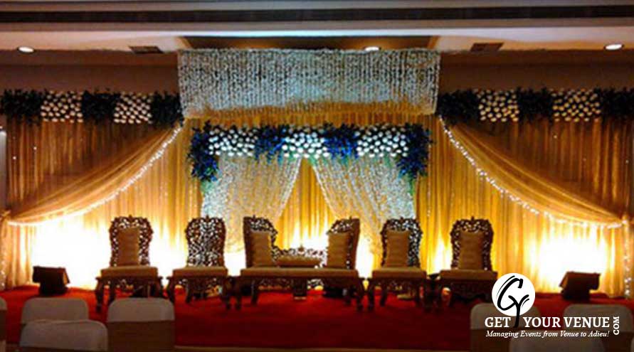 The vast expanse of verdant lawns adds subtle charm to your wedding venue. It ensures your esteemed guests having enough room to meet and greet without bumping into each other. Lovely lighting effect and floral décor make the space more elegant. Stylish interiors, stunningly beautiful lighting effects and comfortable seating arrangements make this banquet hall perfect for a glittery wedding affair. The beautifully laid tables and chairs ensure an idyllic setting. Highly experienced and polite staff serves you with ultimate grace ensuring your comfort.