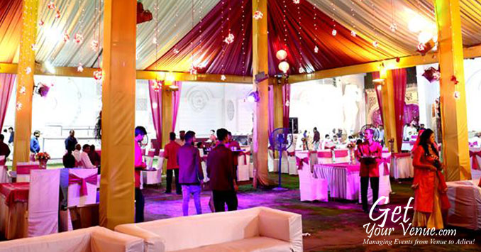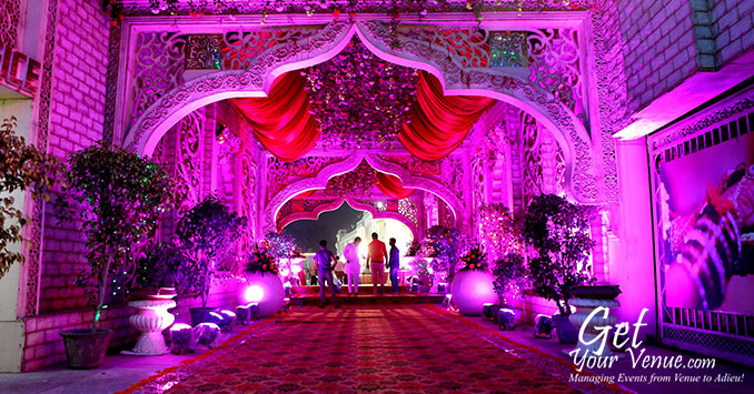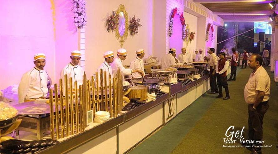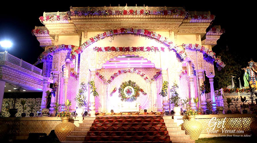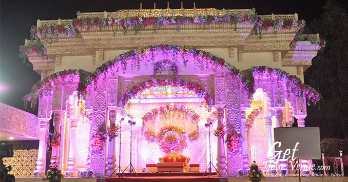 The vast expanse of verdant lawns adds subtle charm to your wedding venue. It ensures your esteemed guests having enough room to meet and greet without bumping into each other. Lovely lighting effect and floral décor make the space more elegant.