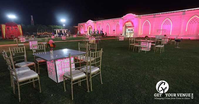 Lawn- With the space area of 6,500 sq. ft, this sprawling space provides you with the occupancy of 500 guests.