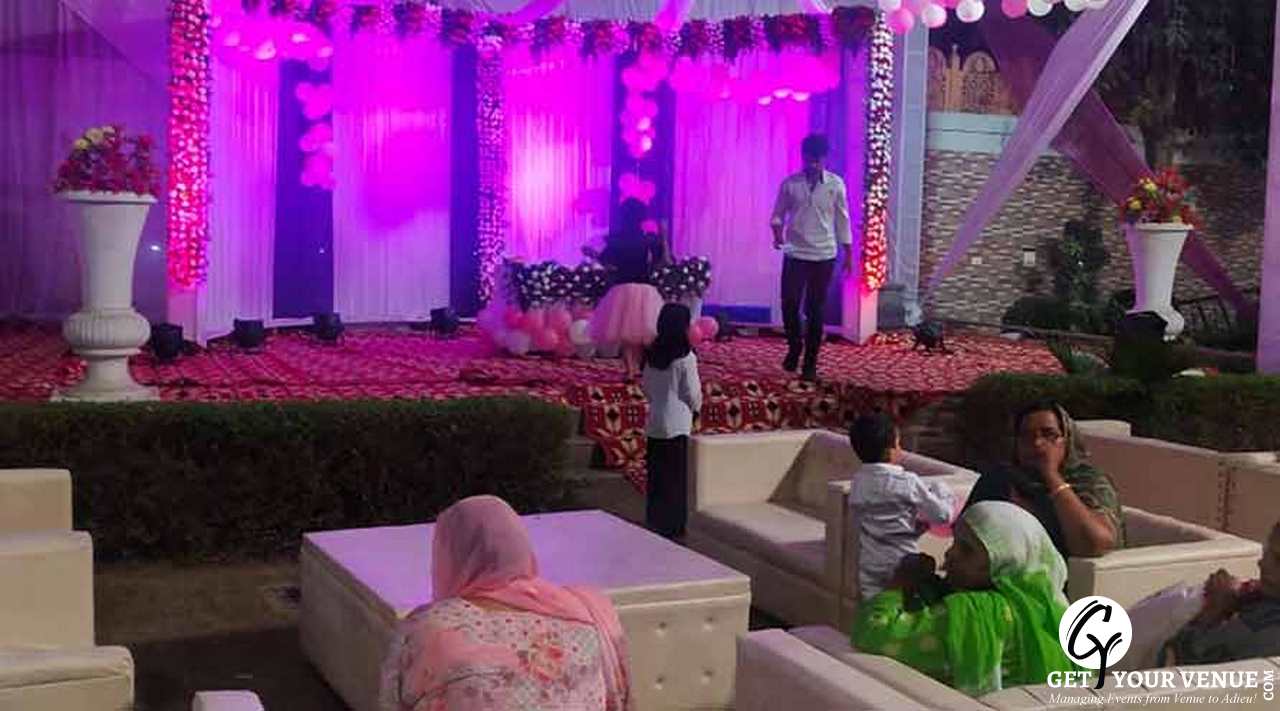 The venue has a beautiful lush green lawn ideal to host any functions.