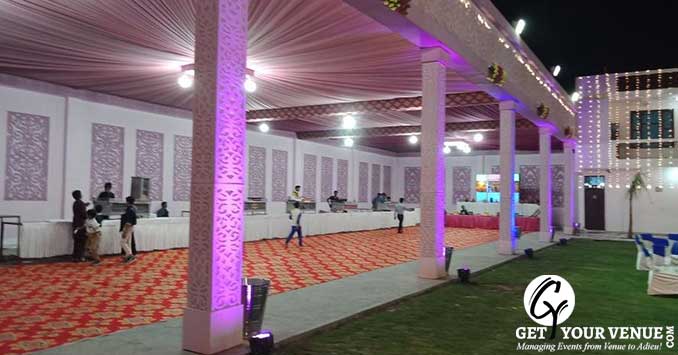 The banquet hall is equipped with impressive interiors and air conditioning to accommodate any event under any weather conditions. 1 complimentary changing room is also provided to the guests. The rate for veg meal is INR 1500 and for the non-veg meal is INR 1600. The decoration in the hall costs INR 30000. Wedding venue Noida for reception can be held here and the guests will love to have mouth-watering dishes offered to them. Outside food and alcohol is also allowed in the venue.