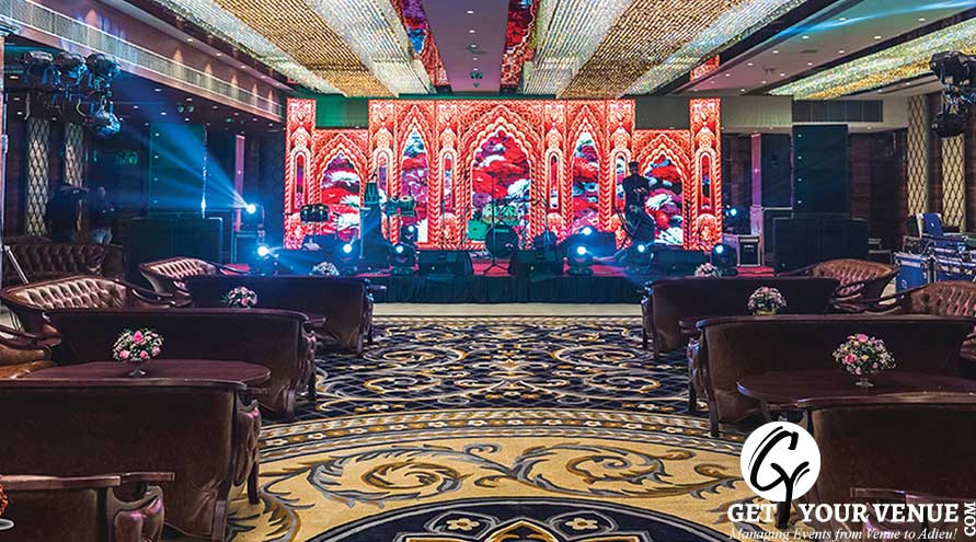 Banquet Hall: This air-conditioned hall in Ghaziabad provides you with all modern amenities and luxuries to enjoy a relaxing time celebrating your life events. The 15,204 sq ft space area allows you to host an event for 1200 guests with ease.