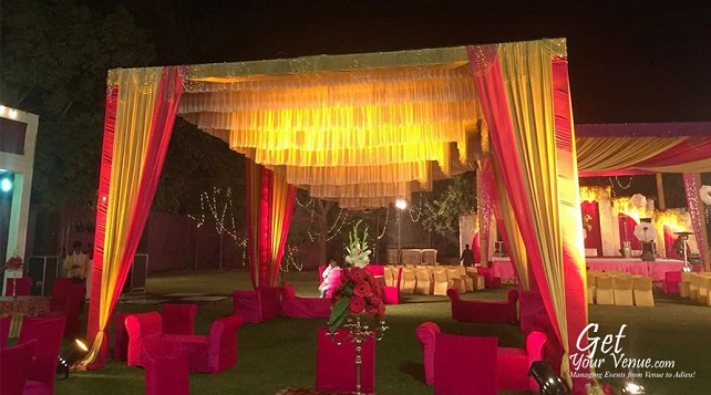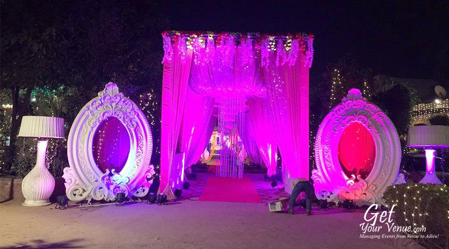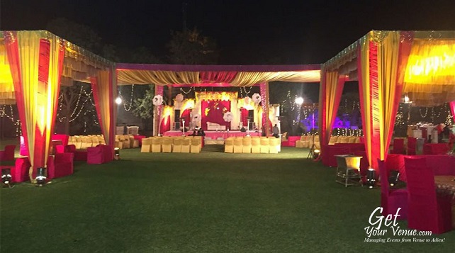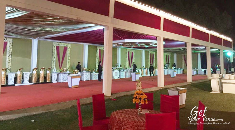 A beautiful party lawn in the NH8 area, Ryan Garden Kapashera is one of the oldest wedding venues in South Delhi. Whether you’re planning a wedding reception, business event, birthday party or marriage anniversary, this venue is the perfect place to celebrate all kinds of celebrations. It has a team of well-trained staff that treats your guests with great elegance and professionalism. The venue has an open dining area with garden and waterfall that captivating the party mood and provides a beautiful atmosphere to your guests. Ample parking, neat and clean toilets with attendants, aureate lighting, power backup and exquisite decorations are part of the package. If a beautiful open area that offers complete privacy is what you’re looking for, rest assured your search has ended.