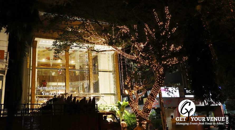 Samskruthi Hall - It provides a huge hall spread across an area of 3800 sq. Ft. It can accommodate a gathering of approx. 300 people. The hall fits in perfect to provide you with a beautiful evening of the event organised as the hall has high-speed Wi-Fi and all the basic facilities and amenities in it. The hall is best for formal and informal events.