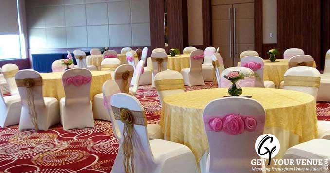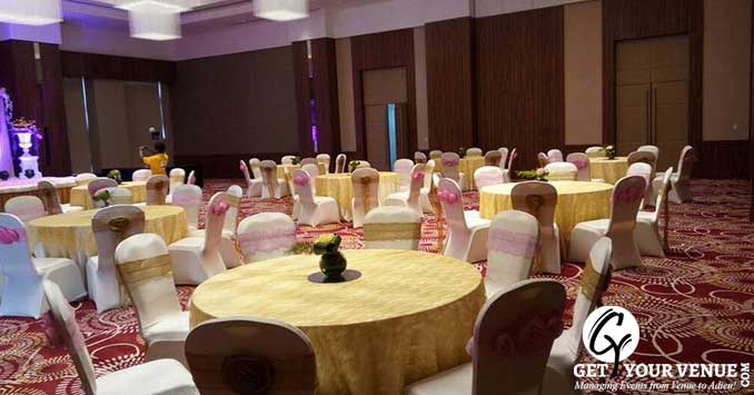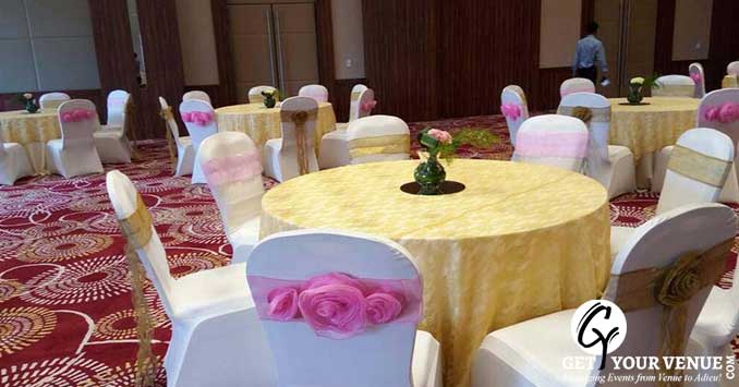Tangerine Grand :is the banquet hall in the premise which can handle 400 guests. The outstanding interiors of the hall welcome the guests. In-house decoration and catering is provided by the hotel. The veg meal can cost INR 1300 per plate and the non-veg can cost INR 1500 per plate. The decoration can cost INR 30000.