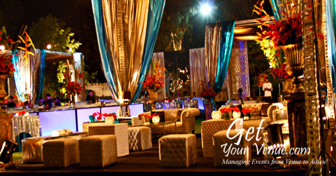 Lawn & Banquet – The romantic ambiance created by this 60,000 sq ft garden, combined with stunning food and professional service can undoubtedly make your day special. With a seating capacity of 500 to 1500 guests is one of the biggest wedding lawns in South Delhi.
