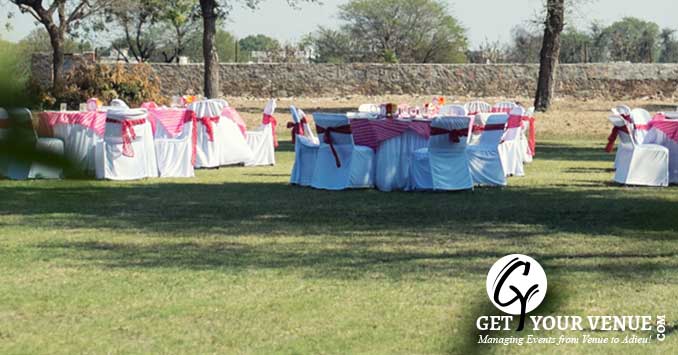 The vast expanse of verdant lawns adds subtle charm to your wedding venue. It ensures your esteemed guests having enough room to meet and greet without bumping into each other. Lovely lighting effect and floral décor make the space more elegant.