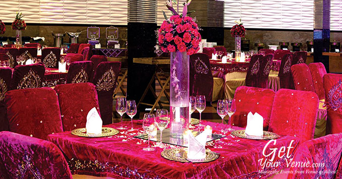 Scarlet 1 Hall – A 9,338 sq sized banquet hall, the Scarlet 1 can accommodate 350 to 650 guests. It is the ideal place to host ceremonies like Roka, engagement, and mehendi, with close family and friends.
