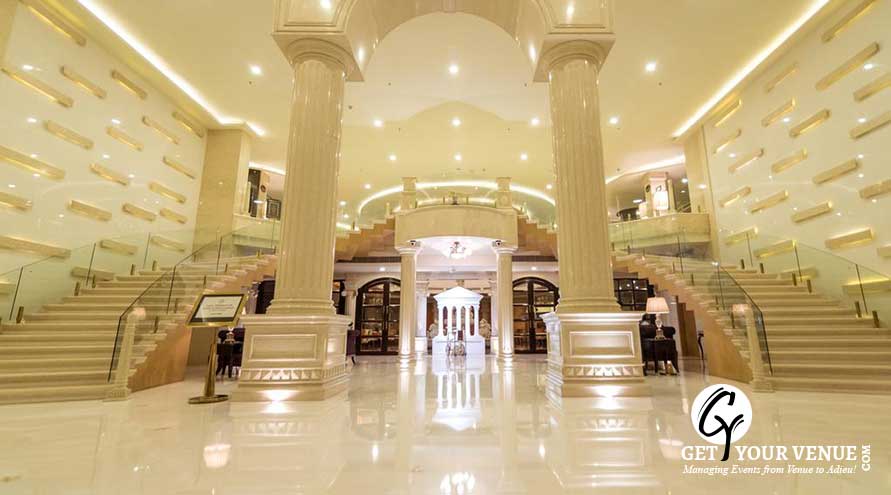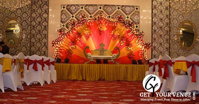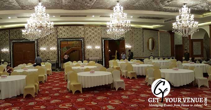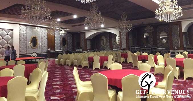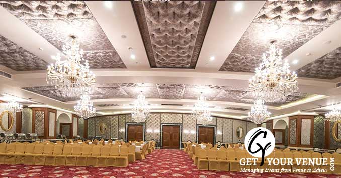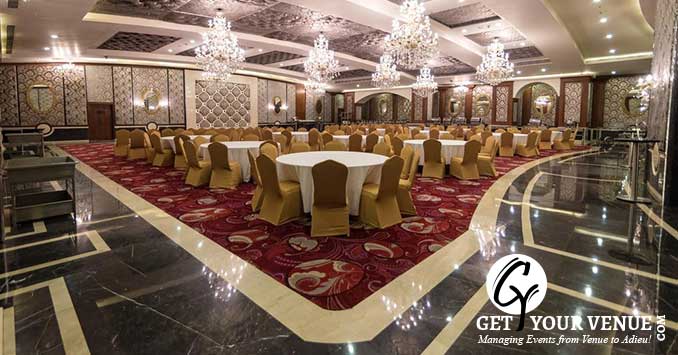 Stylish interiors, stunningly beautiful lighting effects and comfortable seating arrangements make this banquet hall perfect for a glittery wedding affair.