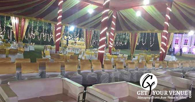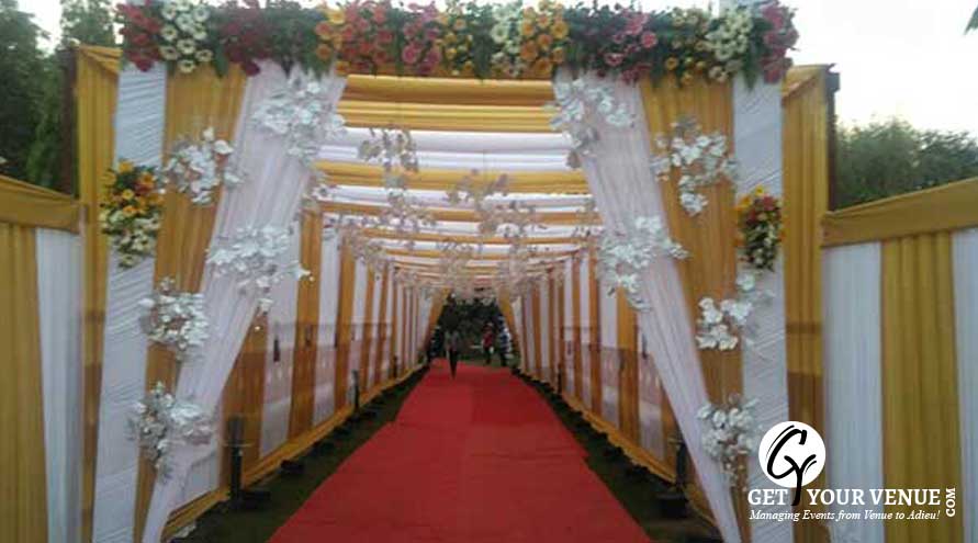 The vast expanse of verdant lawns adds subtle charm to your wedding venue. It ensures your esteemed guests having enough room to meet and greet without bumping into each other. Lovely lighting effect and floral décor make the space more elegant.