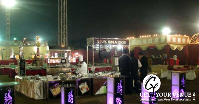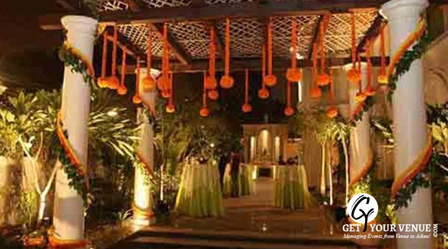 The vast expanse of verdant lawns adds subtle charm to your wedding venue. It ensures your esteemed guests having enough room to meet and greet without bumping into each other. Lovely lighting effect and floral décor make the space more elegant.