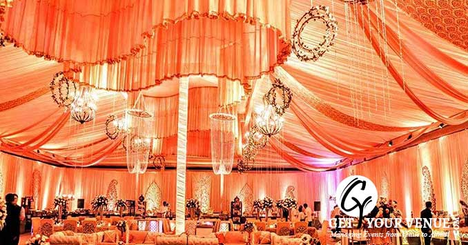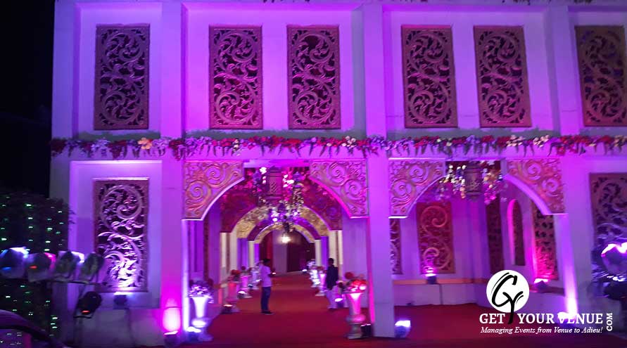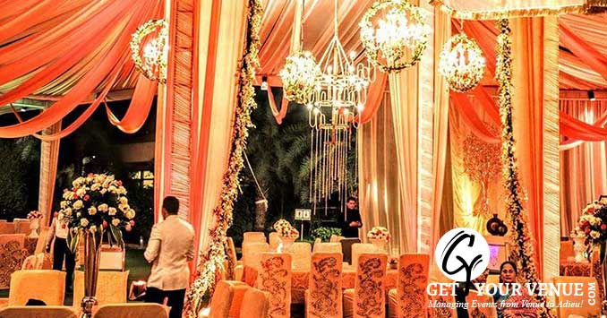 The vast expanse of verdant lawns adds subtle charm to your wedding venue. It ensures your esteemed guests having enough room to meet and greet without bumping into each other. Lovely lighting effect and floral décor make the space more elegant.