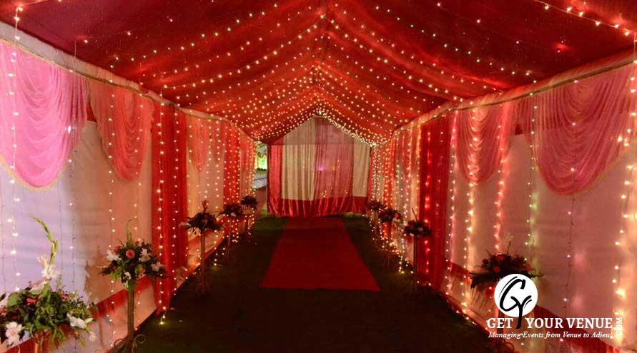 The vast expanse of verdant lawns adds subtle charm to your wedding venue. It ensures your esteemed guests having enough room to meet and greet without bumping into each other. Lovely lighting effect and floral décor make the space more elegant.